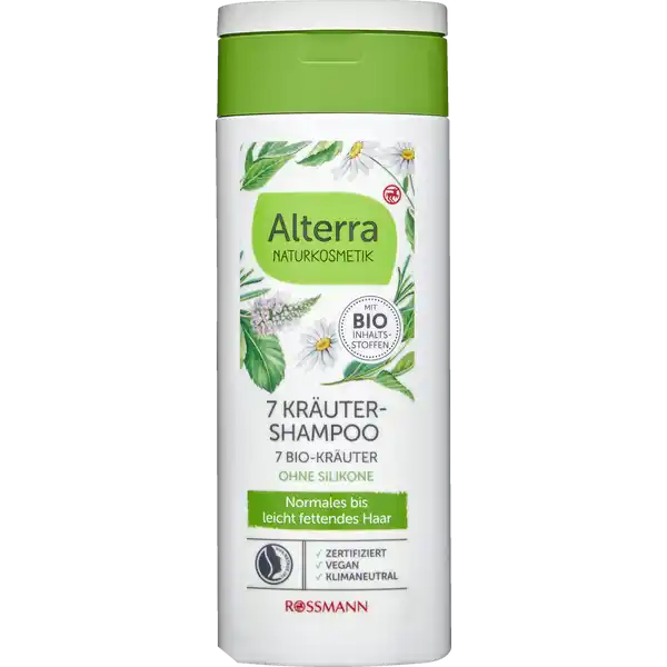 La formule du shampooing biologique à base de plantes alterra NATURKOSMETIK 7 avec glycérine végétale hydratante et un extrait de 7 herbes issues de la culture biologique contrôlée assure la fraîcheur et convient particulièrement aux cheveux normaux à légèrement gras. Les tensioactifs à base de plantes nettoient les cheveux en douceur.
