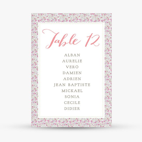 Optez pour une papeterie assortie avec les cartes plan de table déclinées du modèle de faire part Eloise.