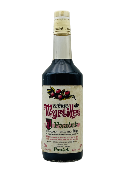 Description du spiritueux : Distillerie Paulet est une crème de myrtille de la Drome-Ardèche . C’est une crème de fruit élaborée à partir d’infusion de myrtilles sauvages ramassées à la main sur les rudes plateaux Ardéchois. Belle couleur sombre a reflets violines . Au nez , parfum subtil et délicat de la myrtille. En bouche , la saveur douce et délicate de la myrtille, belle finale fruitée , degré 15 % ,période présumé année 70 .