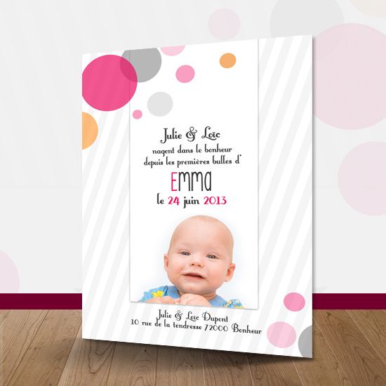Le joli faire-part de naissance ou baptême Bulles.