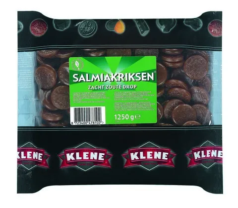 Klene Salmiakriksen, drop voor de dropliefhebber die niet terugdeinst voor een beetje zout. Knapperig van buiten en zacht van binnen, dus extra genieten! In een handige stazak, dus ideaal voor onderweg of thuis op de bank.