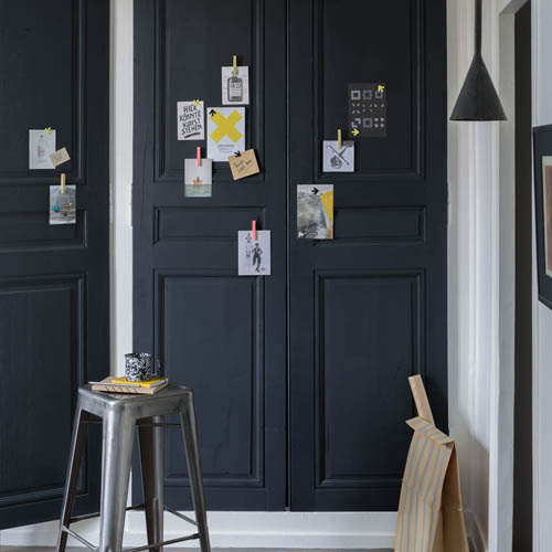 Puis appliquez Le Tableau en 2 couches et laissez sécher 4h. Vous pourrez ainsi à la fois poser des aimants et écrire à la craie dessus !