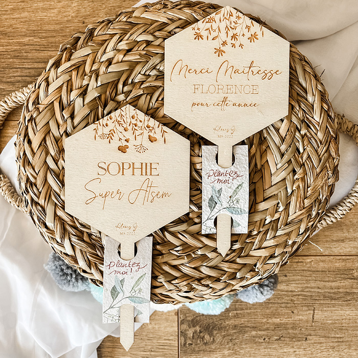 – Bois clair contreplaqué 3mm + étiquette ensemencée